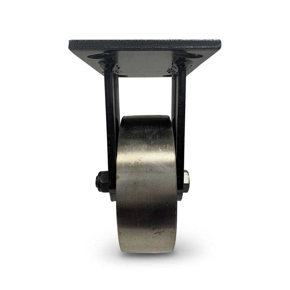 EXTREME HEAVY DUTY fabricated steel componentry with black zinc finish for corrosion resistance. Full cast iron, double ball bearing core centered wheel. Suitable for use on automotive assembly lines, aviation trolleys and in production manufacturing plants.