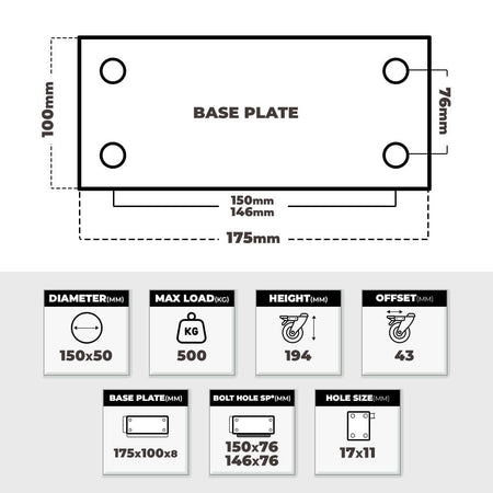 Grip 41901 150mm (6") 500kg Waste Bin SG Iron Fixed Wheel Castor