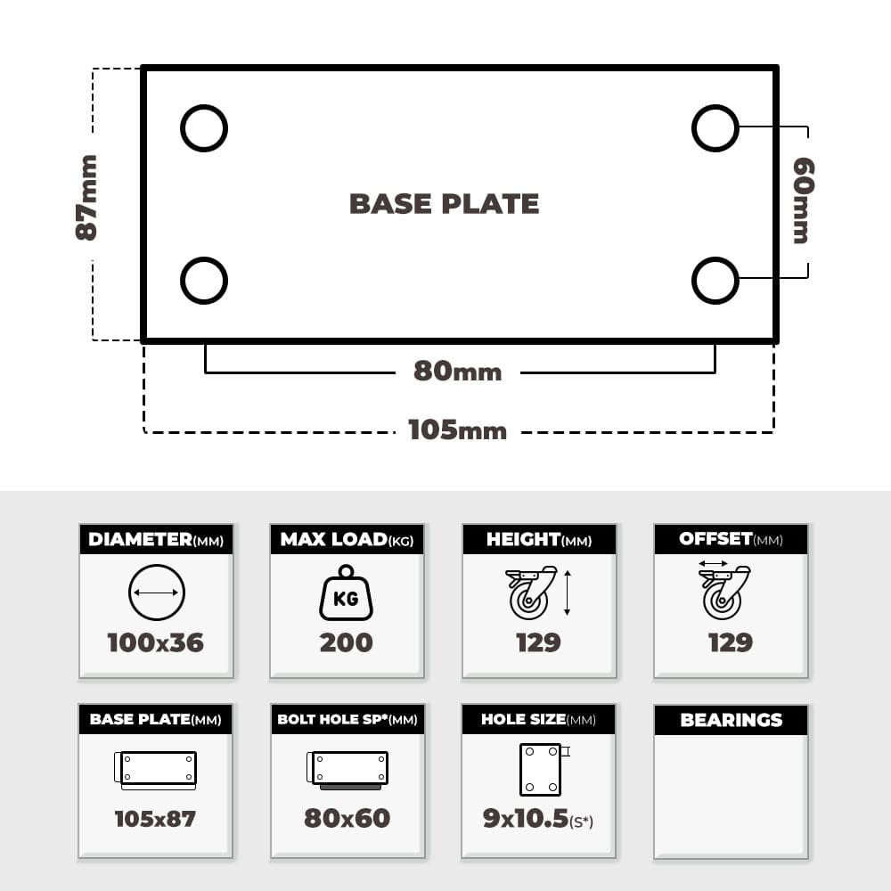 - Base Plate: 105x87