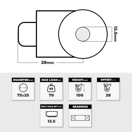 Grip 42007 75mm 70kg Institutional Grey TPR Swivel Castor with Brake & Bolt Hole