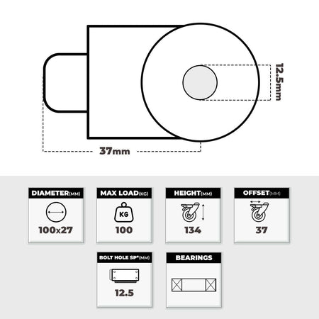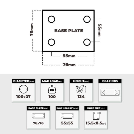 Grip 42011 100mm 100kg Institutional Grey TPR Swivel Castor with Brake & Bolt Hole