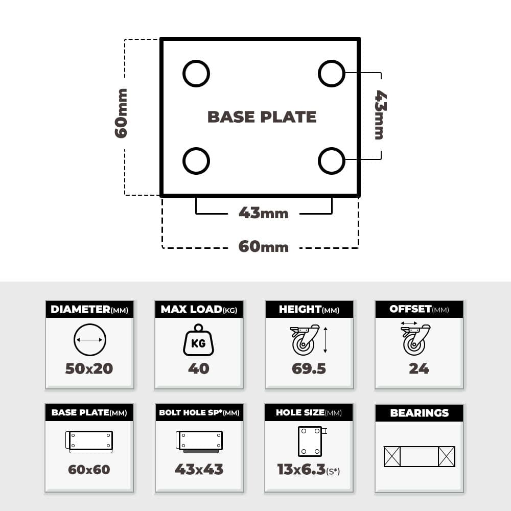 Grip 42002 50mm 40kg Institutional Grey TPR Swivel Castor with Brake