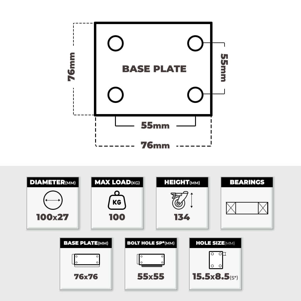 GRIP INDUSTRIAL GREY SERIES CASTOR WHEELS