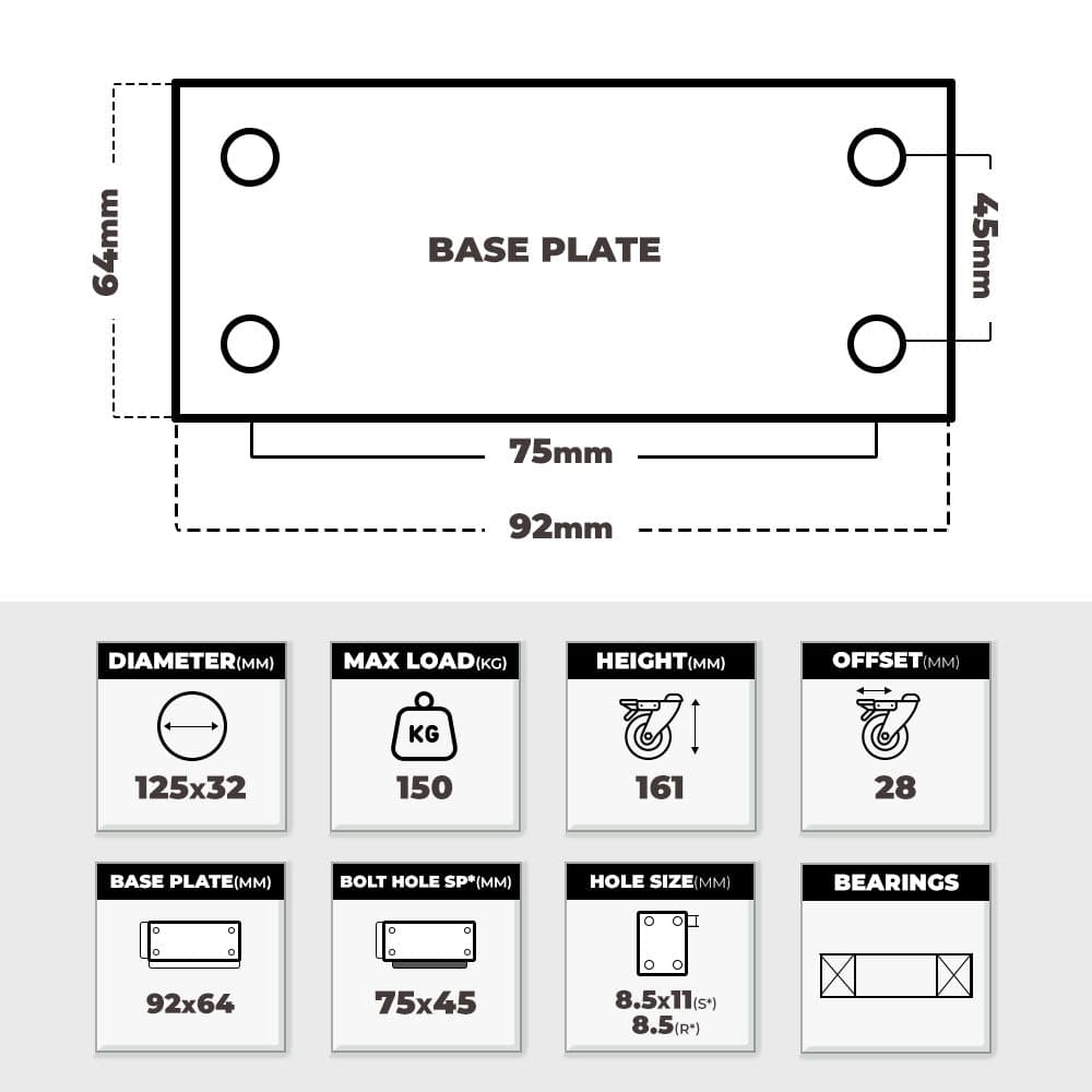 Grip industrial grey series castor wheels feature precision ball and roller bearing technology coupled with quality pressed steel chrome and nickel plated componentry. There are 3 subcategories in this range namely: GREY STEEL CORE, GREY INSTITUTIONAL & GREY TPR.