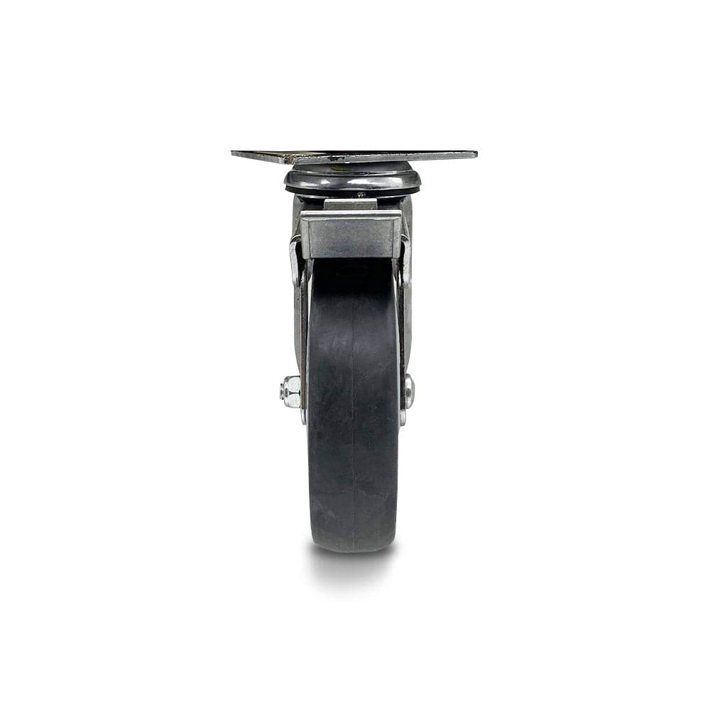 Chrome plated pressed steel componentry with grey polypropylene core centred thermoplastic rubber wheels(non marking) with quality ball bearings and 2 piece dust cover.