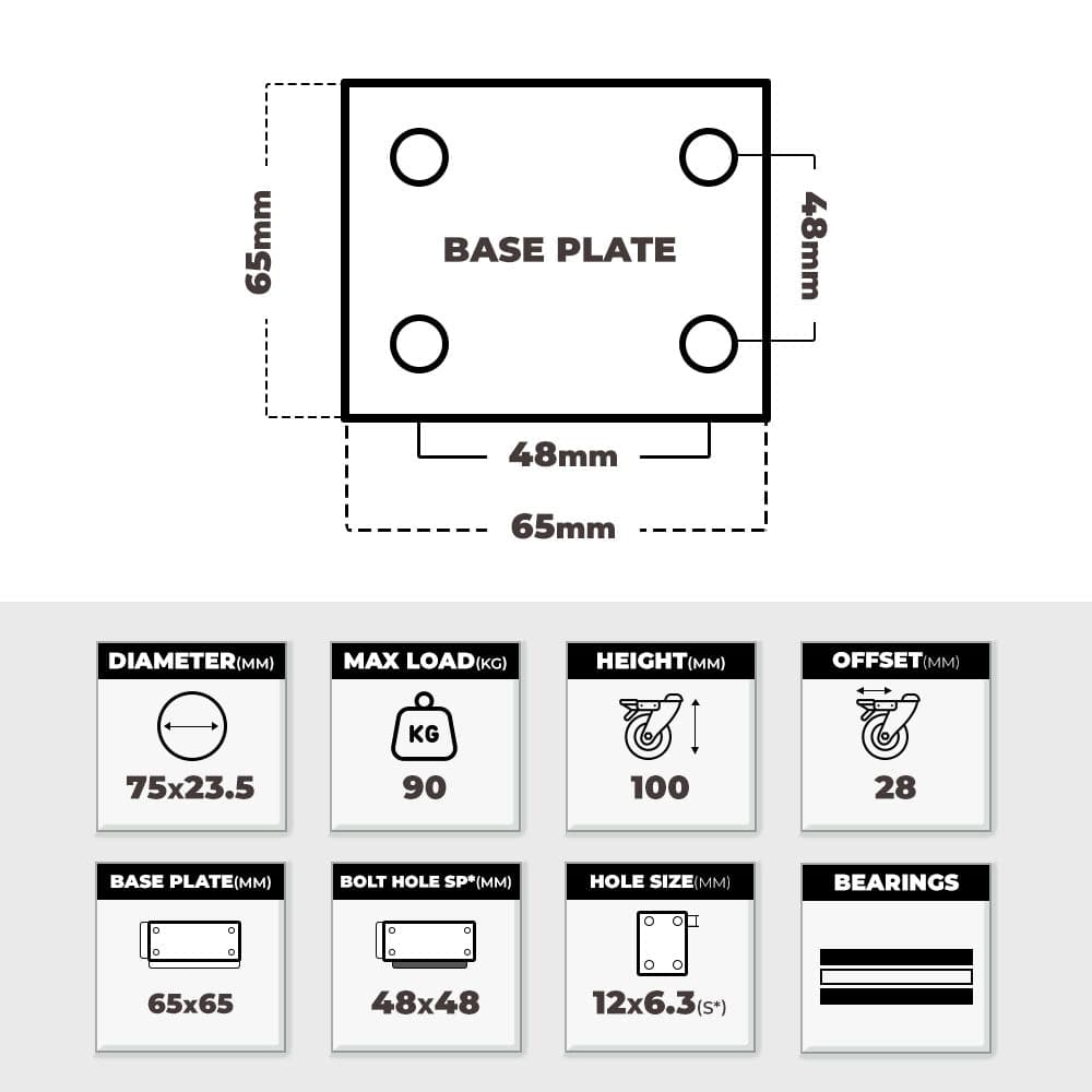 Grip industrial white series castor wheels feature plain and roller bearing technology coupled with pressed steel componentry. There are 2 subcategories namely, NYLON PP CORE and PP SANDWICH.