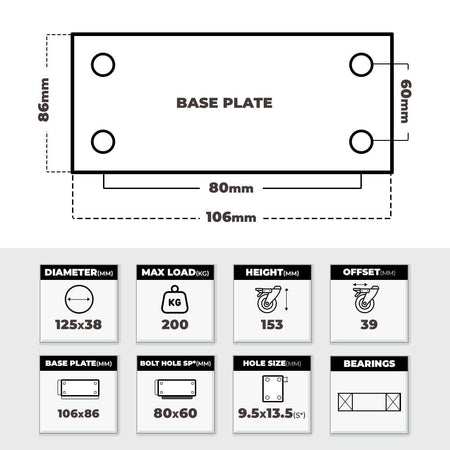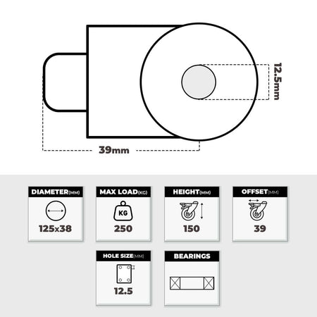 Grip 41993 125mm 200kg Poly Moulded Poly Core Swivel Castor with Brake