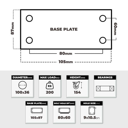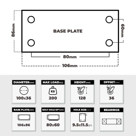 Grip 41995 100mm 200kg Poly Moulded Aluminium Core Swivel Castor