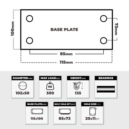 Grip 43022 102mm 300kg Industrial Heavy Duty Cast Iron Swivel Castor