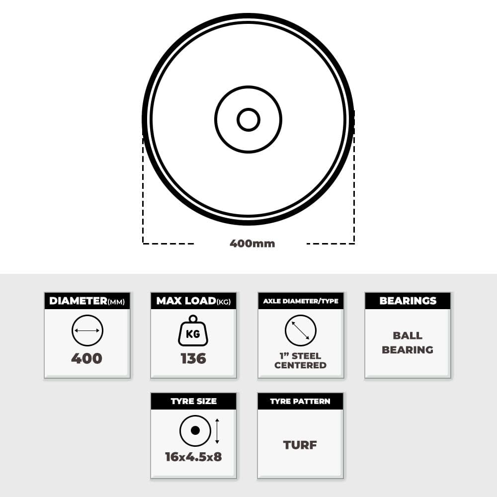Grip 52107 400mm 1" Offset Rubber Steel Core Pneumatic Wheel