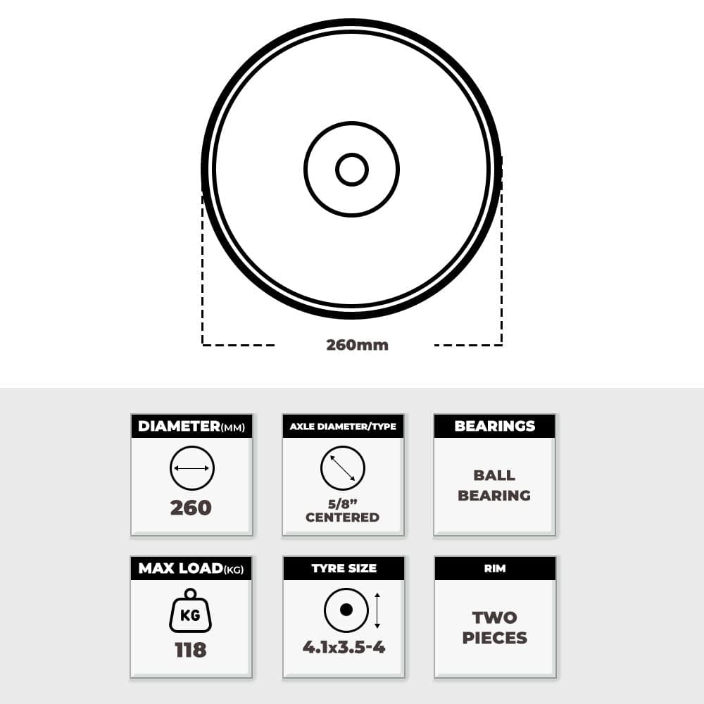 Grip 52104 260mm 118kg 5/8" Offset Rubber Two Piece Steel Core Pneumatic Wheel